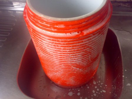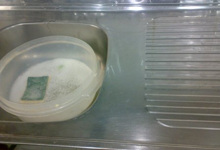 وهنا بعد التنظيف والتعقيم طبعا باسفنجة خاصة غير اسفنجة المواعين