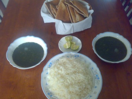 واتغدينا وطبعا مع اختلاف الاذواق واحد من عيالي زعل ما يحب الملوخية والثاني فرحاااان لانه يحبها