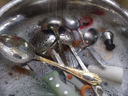 وعبيت الكروانة موية حارة وكلور وفيري ونقعت الملاعق