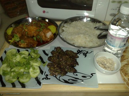 سويت تشكن ماسالا اخذتها من على علبه بهارات هندية خطيييييييييييييرة ورز ابيض وكباب طلع كانه كباب ناجي الحربي كيف وازي وهاو ادونت نو