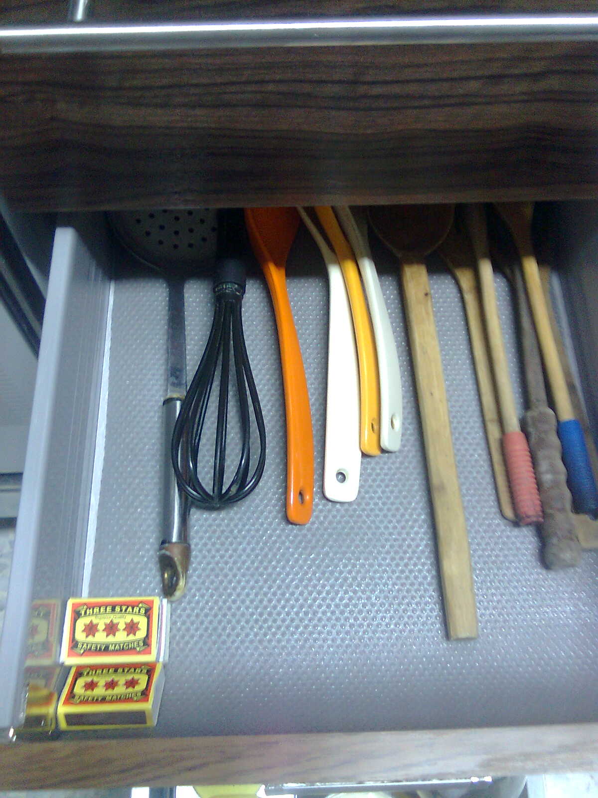 وغسلتها ,نشفتها ورجعت البهارات لمكانها على خير .غسلت الدروج الخاصة بالبهارات ويلي تحتها للملاعق يلي استعملها للطبخ وتحتها درج السمنة والزيت وكل مايلزم اثناء الطيخ كمان . فرشتهم بمفرش مشمع , فكيت مقسم الادراج
