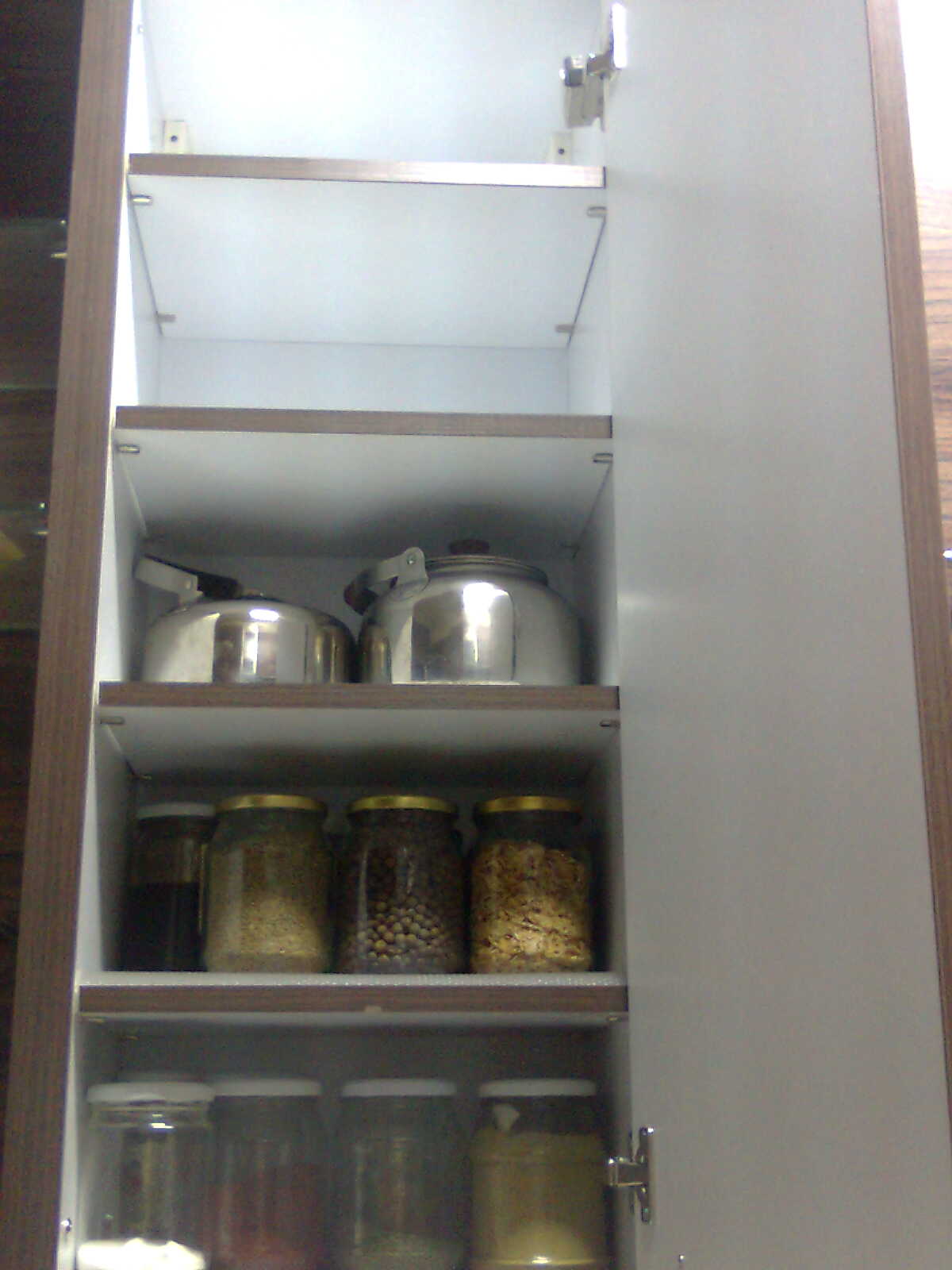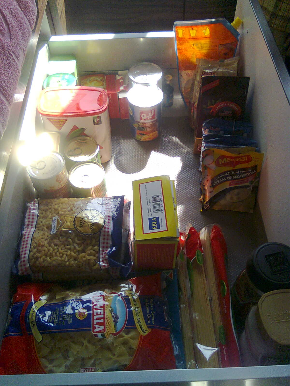 وهي صورة خزانة البهار يلي فوق ولسا ما امتلات كلها وكمان فردت المشمع بعد التلييف والمسح وغسيل القطارميز .