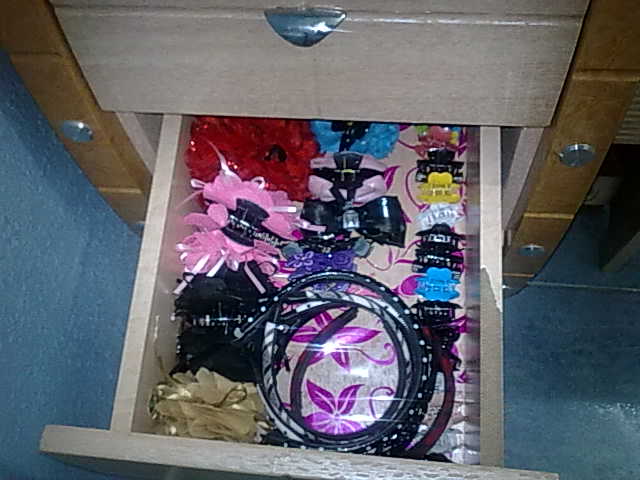 في الصباح بعد ما راحت بنتي للمدرسه رحت لغرفه النوم رتبت التسريحه ورتبت الاكسسورات في درج التسريحه الكبير نظفته وفرشته باالسولوفان ووضعت فيه القسمات عشان يسهل على وجودها ودرج حطيت فيه بكل الشعر ودرج حطيت فيه لفافات الشعر وعلبه الخياطه وباقي درجين لاغراض زوجي