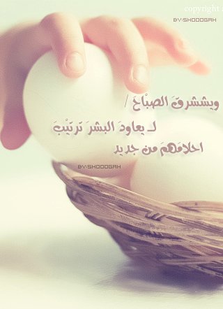 صباح .. صباح البراءة والصدق والوفاء .. إذا أجبرتنــــــــــــــي الحيــــــــــاة على فـــــــــــــــــراق من أحــــــب فالأصالــــــــــــة علمتنـــــــــــي أن لا أنسى من أفـــــــــارق تَمْضِيَ الْأَيَّــآمْ وُلَآ نَدْرِيْ عَنْ الْمَكْــتُــوْبْ وَتَمْضِيَ الْأيْآمْ رُبَّمَا بَقِيَ لَنَا ثَوَانِيِ دَقَائِقَ سَاعَاتٍ ايَّامٍ اشْهُرِ سِنِيْنَ الَىَّ مَتَىَ وَالْايَآمَ تَسْرِقْنَا وَنَحْنُ فِيْ غَفْلَهٍ هَذَا مَهْمُوُمٌ وَهَذَا حَزِيِنْ وَهَذَا فَقَدْ الْامَلِ وَهَذَا يَشْتَكِيْ وَهَذَا وَهَذَا؟؟!! انْتَ تَتَنَفَّسْ , انْتَ مُعَافَىً , انْتَ سَلِيْمٍ الْعَقْلِ , اذَا الْدُّنْيَا بِخَيْرٍ وَالْلَّهُ احْنَا بِخَيْرٍ .. خَلِّيْ قَلْبِكَ كبّيّيّيّيّيّيّيّييِيّرِ وصباحك الخيــــــــــــــــرصباح .. صباح البراءة والصدق والوفاء .. إذا أجبرتنــــــــــــــي الحيــــــــــاة...
