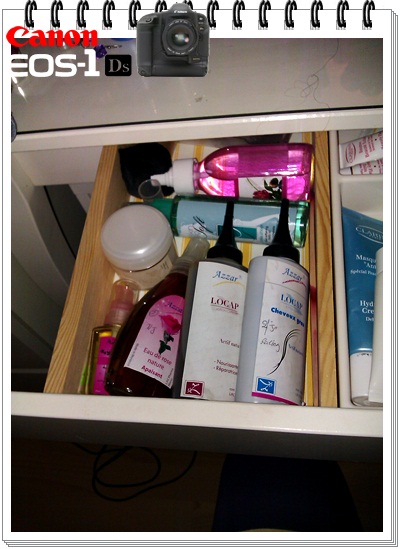 بعدما مسحتو وضعت اغراضي وبما انو مقسم الى 3 اقسام فالاول وضعت فيه الاغراض شعري