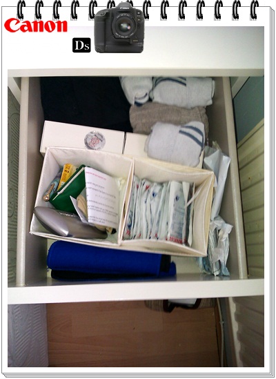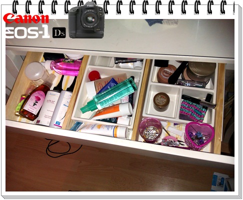 واخذت ادراج بلاستيك كانت عند الاولاد نظفتها وحطيتها بين التسريحه والمكتبه وحطيت في الدرج الاول ملفاتي انا وزوجي والاوراق المهمه