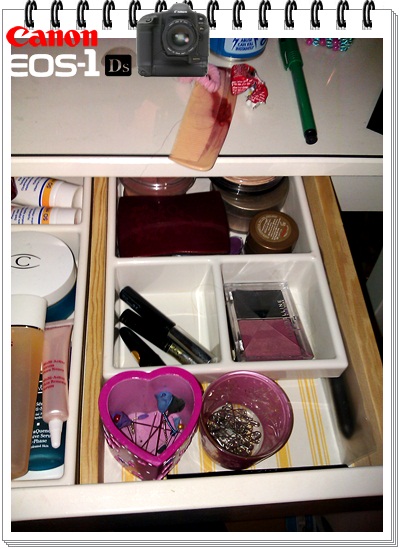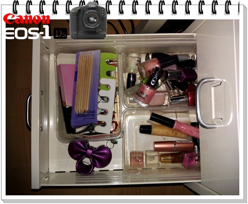 الدرج الاول وضعت فيه اكسسوراتي وشفت الكؤوس انا وخداها من ايكيا وحطا فيها الشبط حق الشعر واهي فكرة تنفع ل الي عندها امورات وحيس مع شبطاتهم