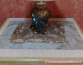 عبارة عن بطانة فستان قديم وقماش مطرز قصقصتهم