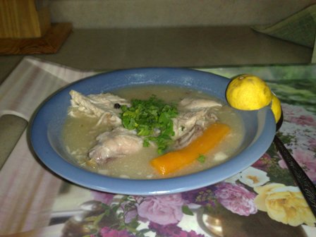 ممكن مرقة لحم او دجاج مع خضار منوعه من كوسه وجزر وبطاطس وبازلاء يعني مرق بس بدون