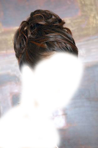 ورافعه شعرها بشكل مرتب**هلا ميمي بسويلك حليب أحط لك نسكافه ولا تحبينه ساده وتغمز بعيونها