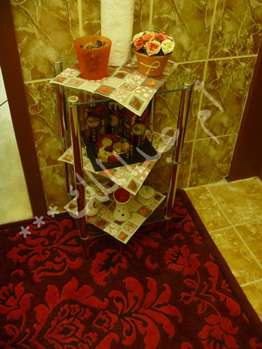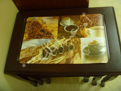 وهنا حطيت على الطاولات بدل المفارش هذه القطع البلاستيكيه