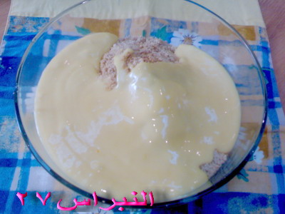 5- نحضر بسكويت شاي مجروش ويوضع مقدار ملعقة صغيرة في تجويف الحلى