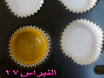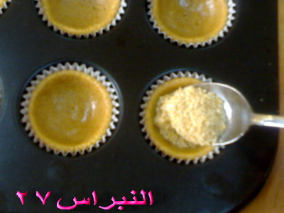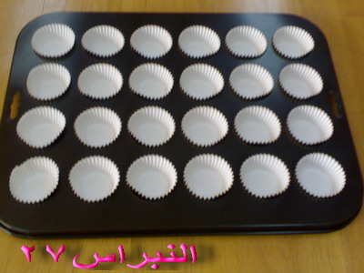 3- نوزع ورق الحلى في صينية الكب كيك الصغير كما في الصورة ...