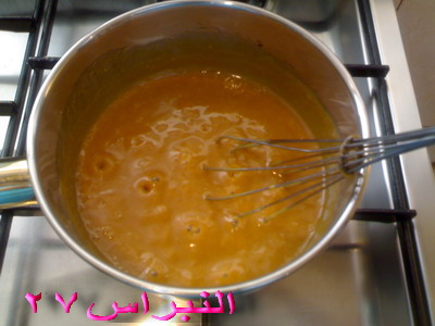 6- نحضر توفي ( نذوب 5 فنجان سكر على النار حتى يصبح لونة بني فاتح (( يفضل السكر الخشن )) ثم نضيف ملعقة واحدة فقط من القشطة نحرك بسرعة بواسطة ملعقة خشبية وعندما يتجانس نضيف 1/2 القشطة والقليل من حليب بوني ويحرك ) راح تحصلين بإذن الله توفي متجانس بدون مايتلكك كما في الصورة ويغطى بها البسكويت ثم تزين بالفستق المجروش وتدخل الثلاجة ...