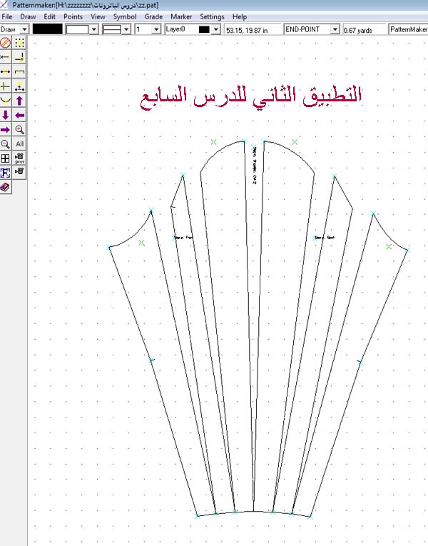 3- اظهري نقاط العمل بالضغط على f5 سمف تظهر خمسة نقاط للحردة يعني راح تكون الحرد مقسمة لستة أجزاء