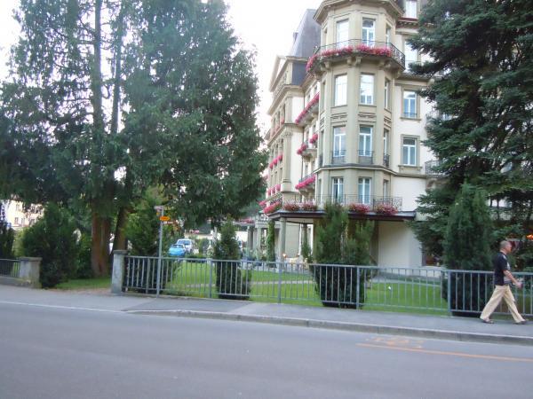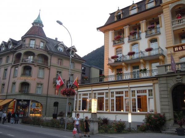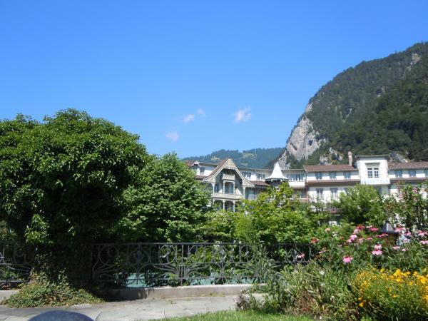 أحد فنادق انترلاكن الراقية مطل على النهر من الجهة الخلفية