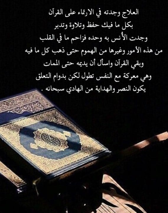 من كان القرآن رفيقهُ في كُل أمر وصاحِبه كُل حين فليبشر بإذن الله تعالى بنورٍ في القلب
