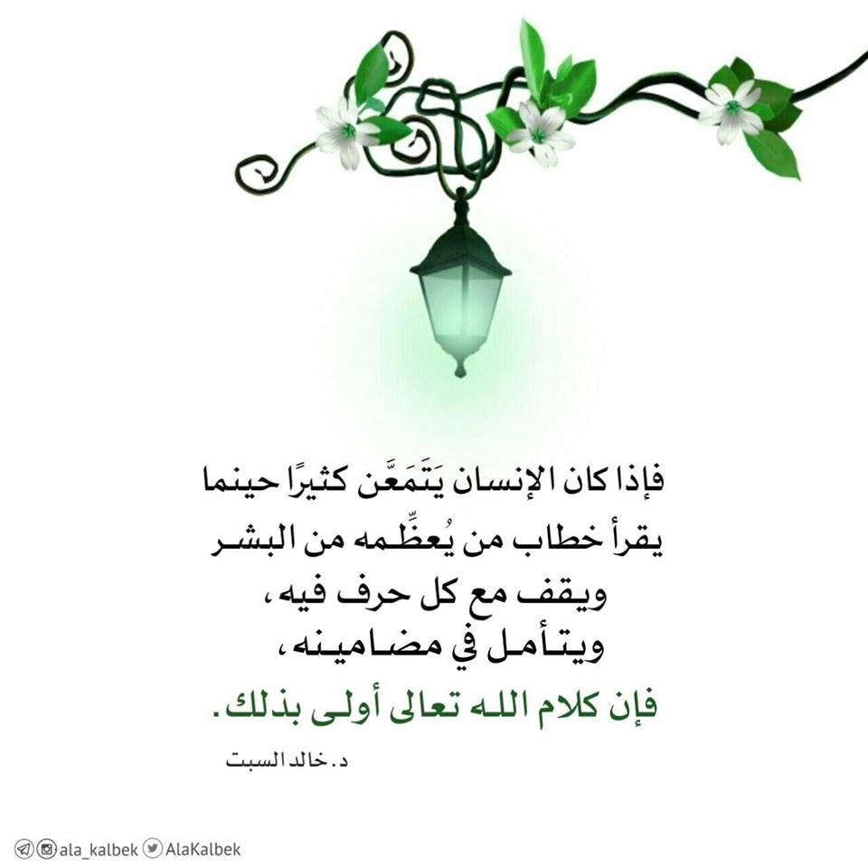 ويقف مع كل حرف فيه، ويتأمل في مضامينه، فإن كلام الله تعالى أولى بذلك