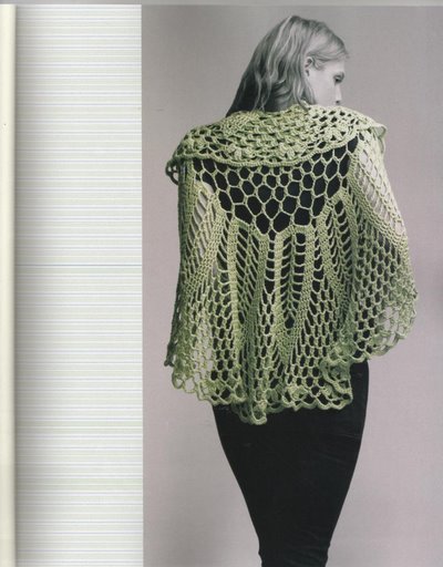 Crochet edge: Crochet an edge around the circle and at the bottom of the sleeves as follows: 1st. round: 1 dtr in the first dtr, *2 ch, skip 1.5 - 2 cm, 1 dtr in the next stitch*, repeat from *-* and finish with 2 ch and a sl st in the first dtr.
