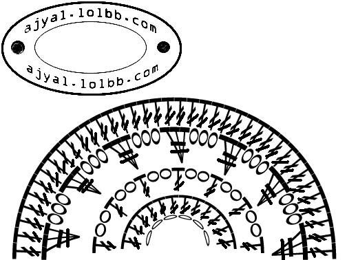 السطر الرابع : 3 غرز بريد رباعية فى اول غرزة بريد رباعية * 3سلسلة ونترك 3 سلسلة و3 غرز بريد رباعية فى غرزة البريد الرباعية التالية * كررىمابين العلامتين وانهى ب 3 سلاسل ونترك 1 غرزة بريد رباعية واغلق بمنزلقة فىالبداية = 36 غرزة بريد رباعية (طبعا اول عمود عبارة عن 4 سلسلة)