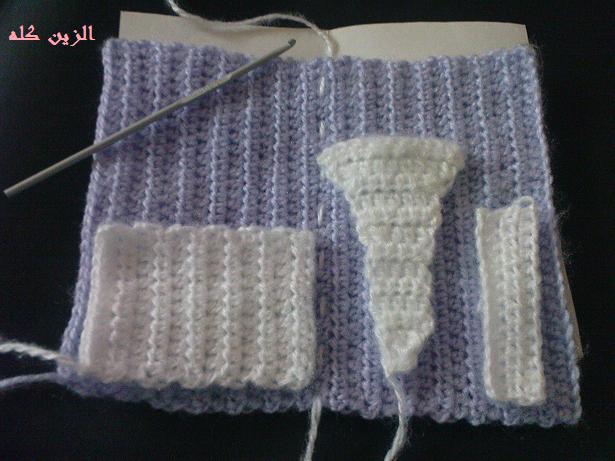 والقطعة المستطيلة حق السنارات نلاحظ انا عملتها بالعرض ايضا وبقولكم ليش بعد شوي ....