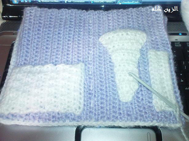وبعدين نشتغل بالكروشيه مستطيلين بنفس حجم الكرتون ... انا اشتغلت بغرزة العمود الناقص ...