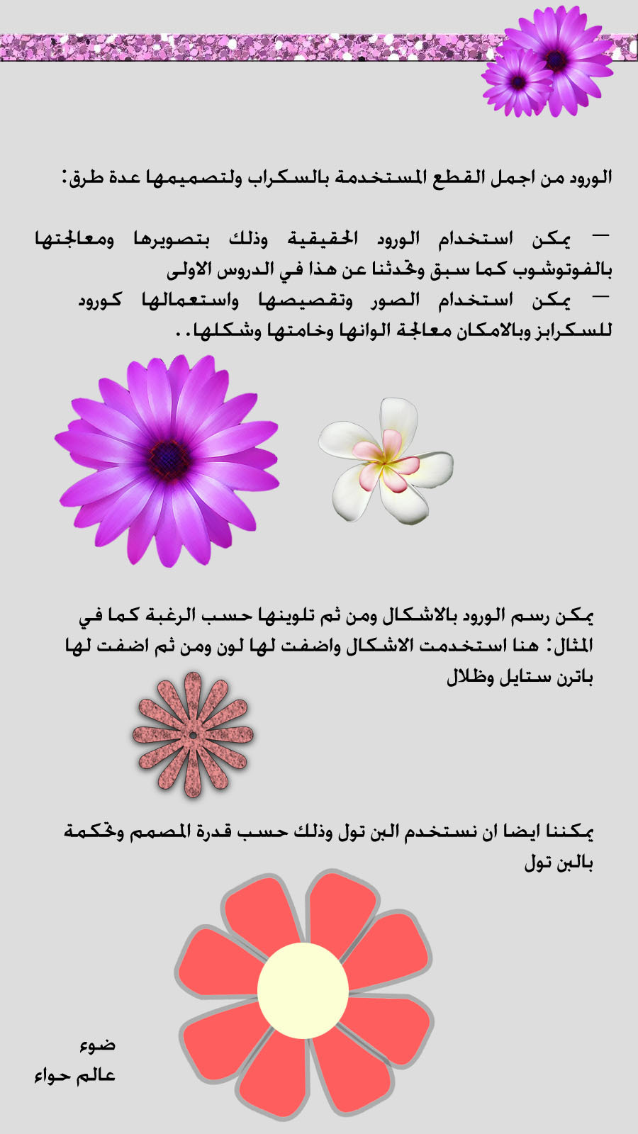 تطبيقات جميلة لكن في الكولاج ياحبذا لو جعلتي القص عشوائي فتكون الصورة لها حدود