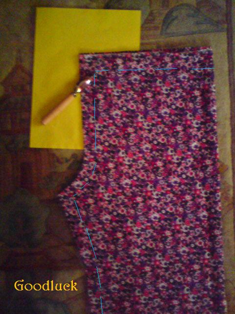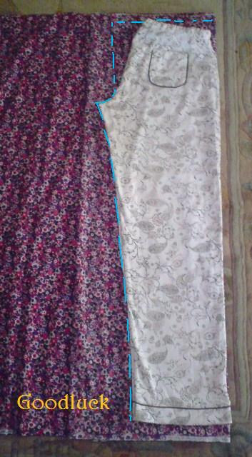 اثني القماش اربع طيات وحطي عليه البترون (اي بنطلون بيجامه مناسب لكِ)