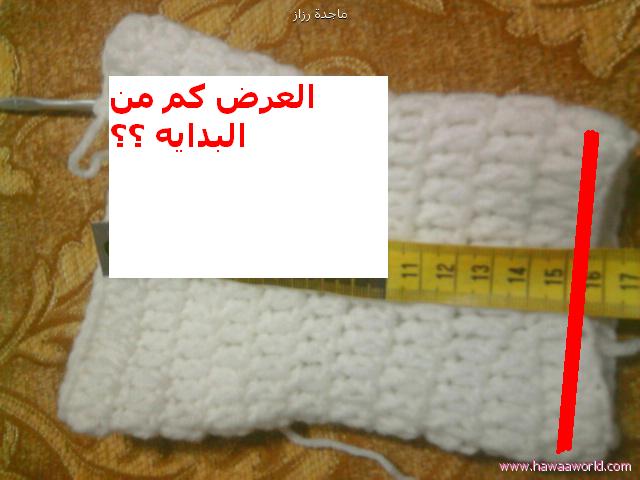 هلاء من تحت لازم يكون العرض ب المتر 9 سم وب الغرز لازم يكون 230 غرزة طبعا 20 غرزة على الداير 9 سم من جهة لا تنسي