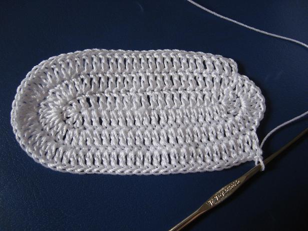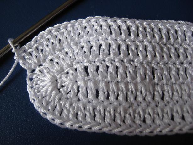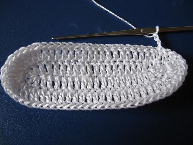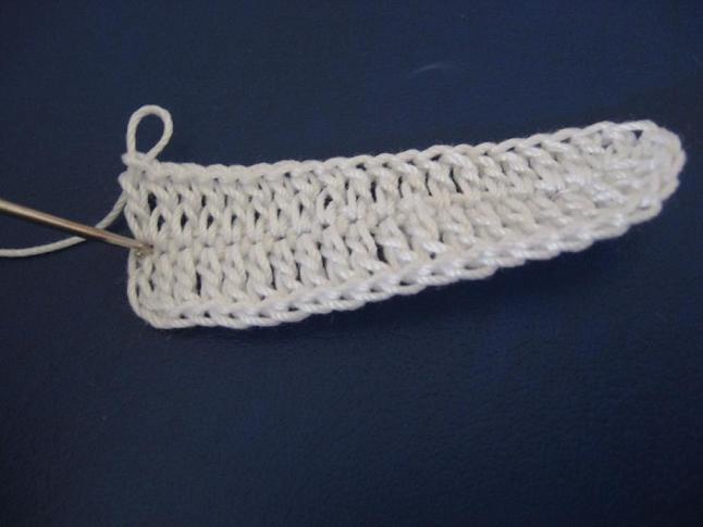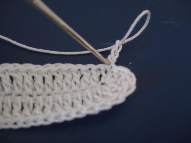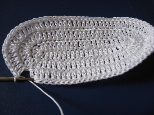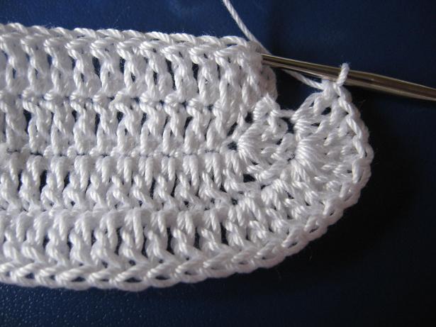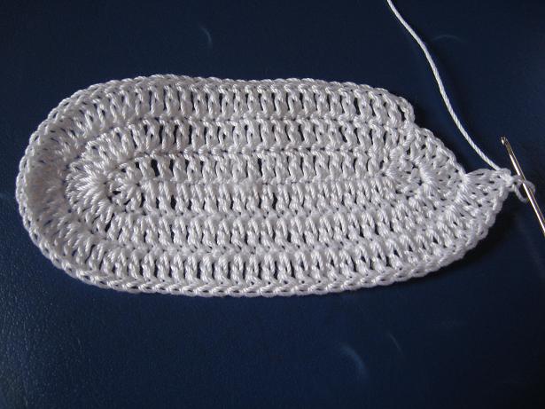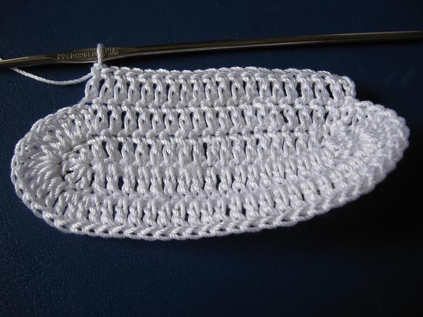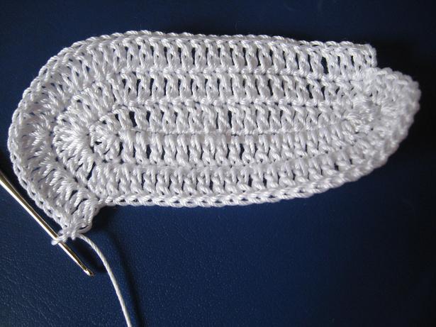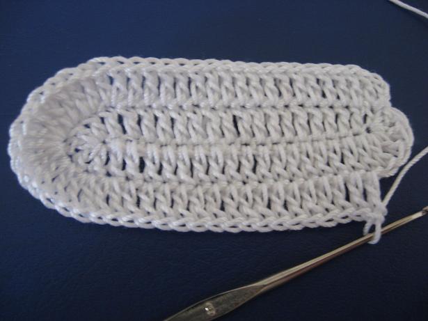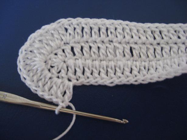 اشتغلي في اخر سلسله 5 اعمده بنفس المكان كما مؤشر في الصوره وحيتكون هذه مقدمه الحذا ء وحطي عليها اشاره