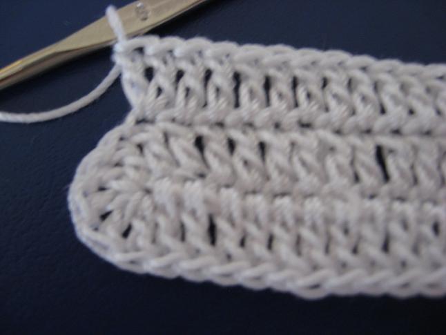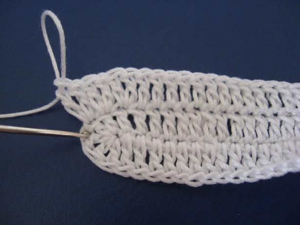 ثم لفي على الجهه التانيه من السلسله اشتغلي مقابل كل عمود عمود بنفس المكان يعني حيكون المجموع 19