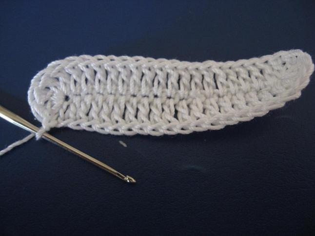 اشتغلي في اخر سلسله 5 اعمده بنفس المكان كما مؤشر في الصوره وحيتكون هذه مقدمه الحذا ء وحطي عليها اشاره
