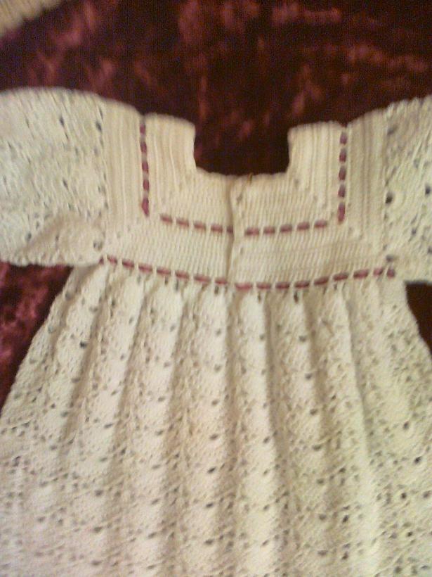 دا فستاني اتمنى يعجبكم.عملتو شويه طويل حبتين لانو حا يكون فستان سابع يكون اطول من قياس البيبي و.ترى الورده العودي اللي في النص زي البروش مو ثابت ايش رايكم حلوه اخليها او اشيله؟؟؟؟اختي تقولي كانك اخذتيها من علبة حلاوه ما عجبتها الفكره كثيير ...؟؟