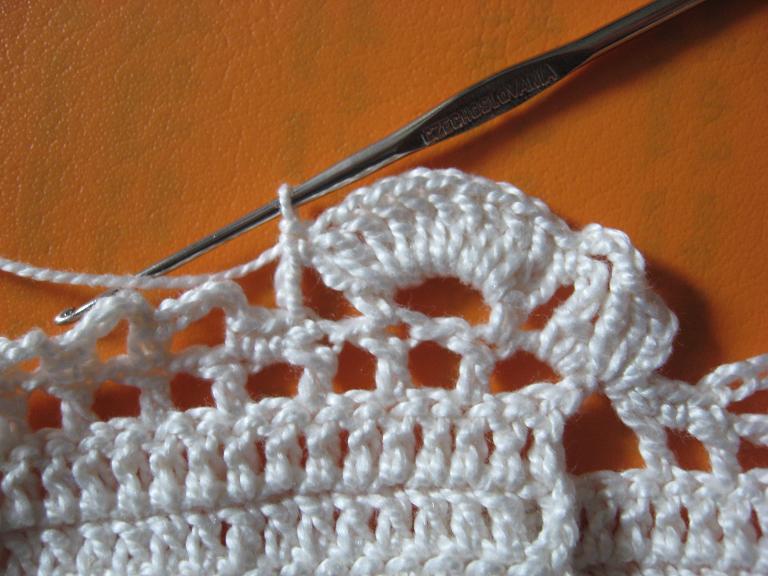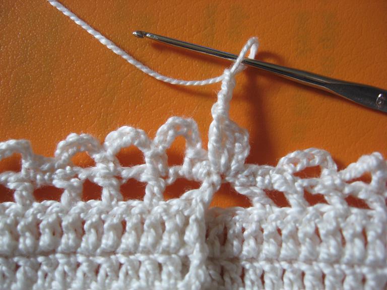 ثم 3 سلسله وغرزه حشو في اول خمس سلاسل من السطر السابق