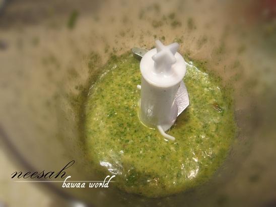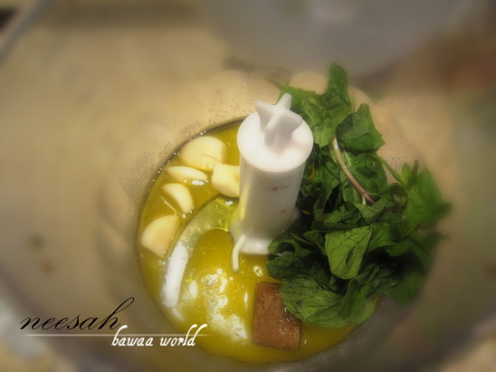 * في الخلاط نحط نص راس ثوم ونعناع وزيت زيتون وماجي وملح وعصير ليمونتين