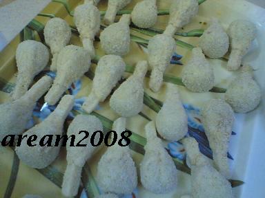 عجينه بف باستري تقطع مربعات ثمتفرد وتحشى دجاج وتشكل على شكل فخذ دجاج باعواد البطاطس ثم توضع في البيض والبقصماط وتقلى