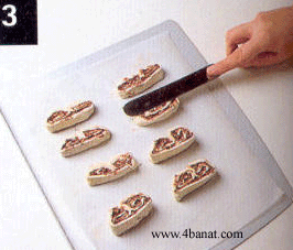 4_ الشريحة الثانية كمان حشيتها شوي جبن وحطيتها على الشريحة الاولي وضغطتها ورشيت وجهها بالجبن والنستلة