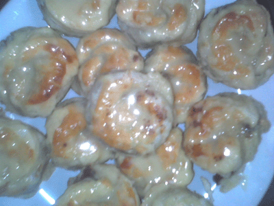 اليوم كمان انا عملت فطور من عجينة البف باستري بس خسارة ماصورتة عبارة عن ((بف باستري وجبن شيدر ونستلة))