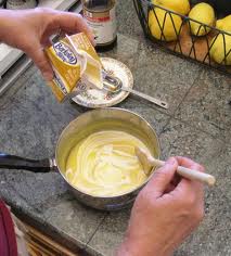 ثم نبدأ بسكب الحليب المتبل بالبصل بالتدريج فوق الزبدة والدقيق مع الخفق السريع حتى تتكثف عندنا الخلطة وتصبح مثل الكريما ثم نضع عليها الجبن التشيدر والكيري والالخردل وتقلب جيدا حتى يذوب الجبن وتمتزج النكهات..