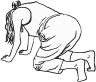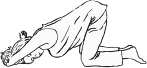اركعي وركبتيك ويديك على الأرض، ( قد تجدين الفراش أكثر راحة )، وأميلي حوضك جيئة وذهاباً . احذري تقويس ظهرك واسترخي ما بين التقلصات نحو الأمام، واضعة رأسك على ذراعيك".