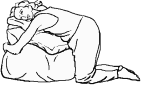 *الركوع والاستلقاء نحو الأمام: اركعي بحيث تكون قدماك متباعدتين، واسترخي فوق كرسي من الوسائد أو المخدات المرفوعة أمامك، أو فوق كيس من الحبوب حاولي تقويم ظهرك، ما استطعت واجلسي على جانب واحد بين التقلصات.