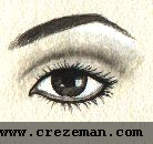 نستخدم اللون الابيض اللماع تحت الحاجب مباشره..ولون فاتح على الجفن المتحرك ثم نضع فوقه لون اسود ونقوم بتدريجه وتخفيف سواده كما في الصوره