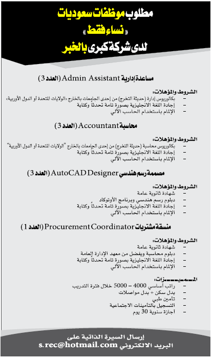 ملاحظة : الرجاء وضع مسمى الوظيفة كعنوان للرسالة