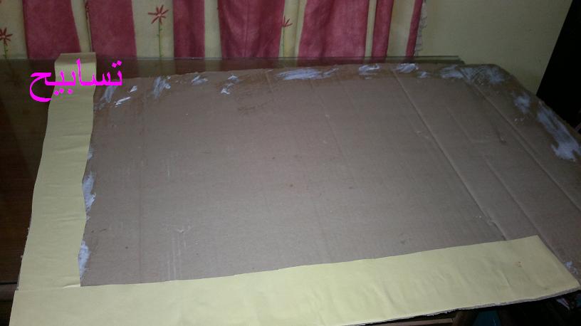 وعشان اخبى مربعات الكرتون والشمع البلخلف حتيط لوح كرتون كمان بعد ما عملت له برواز من الكانسون بلون مختلف