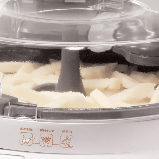 تحطين شوية ماء في الأسفل ،، وبعدين في الشبك السفلي بطاطس ، والشبك العلوي تحطي السمبوسة او الدجاج او اي شي تبين تسلقينه او تقلينه ومو ضروري مره ايضا تحطين مويه يعني المويه للي مايحب الشي يكون ناشف