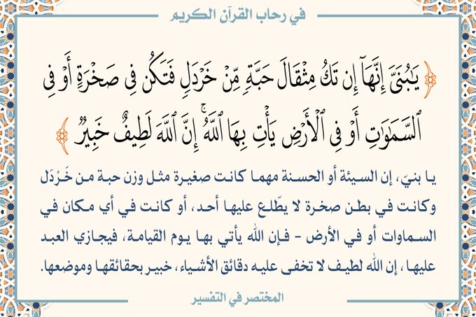 ▪️﴿ يَأْتِ بِهَا اللَّهُ ۚ إِنَّ اللَّهَ لَطِيفٌ خَبِيرٌ ﴾