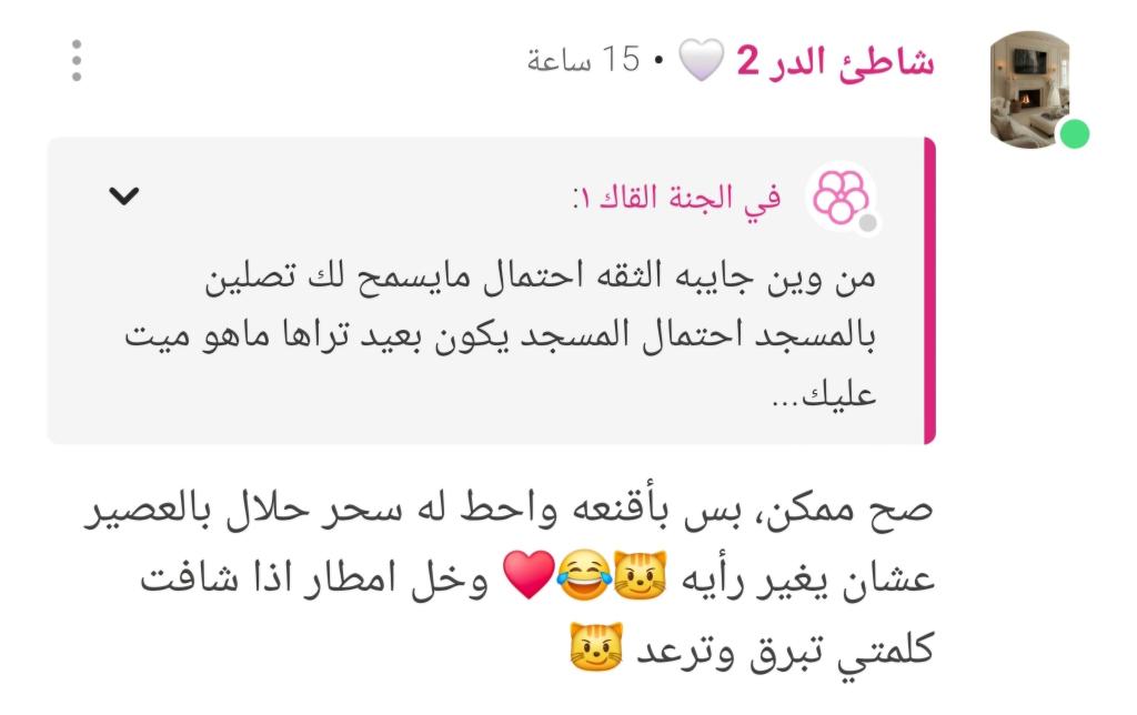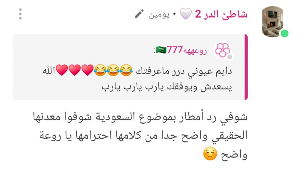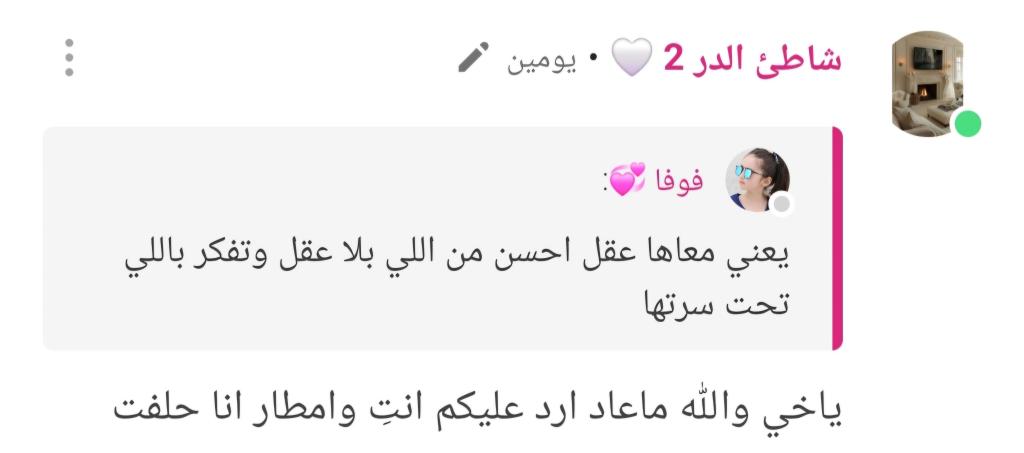 ١ رفعت موضوع تأييدًا لكلامي قسم بالله نفس اللي قالوه لقينا بالعزيزة على قلبك، مافيه أي مبرر لكلامها ونتِ قاعدة تؤدينها٢- لا مارفعت وزر ولا وضعت وزر روحي شوفي سواتها وناظري بعين الإنصاف مو بعين العاطفة