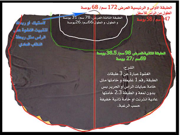 وتكون طبقه كبيرررررررررررررررررررر تترجع ورى وطبقه صغيرة تبغا فوق النقاب من الامام