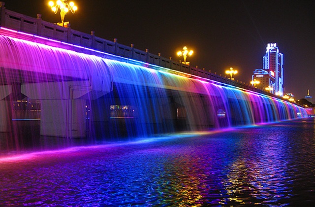 عرض رائع تظهر فيه المياه الملونة وهى تسقط في النهر مثل قوس المطر...