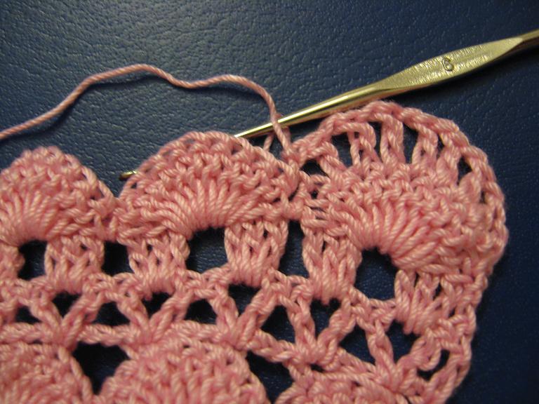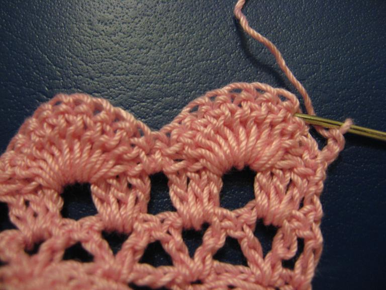 ثم اشتغلي 3 سلسله واشتغلي عمود بلفه في الفراغ ثم 3 سلسه وعمود في الفراغ يعني حتكرري 7 مرات السلاسل وبعدين راح تشتغلي عمود بدون لفه فوق العمود بدون لفه من السطر السابق